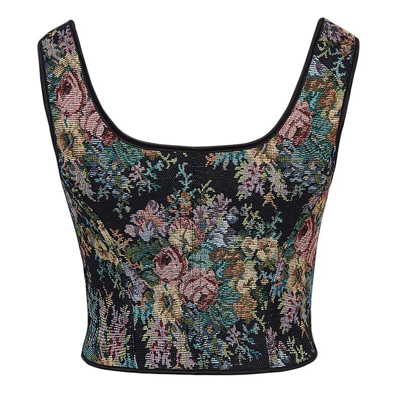 Floral Lace-up Front Vest U-Back 10 Bones Corset