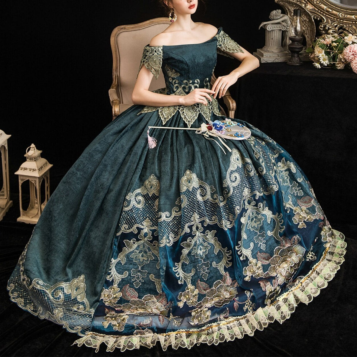 Victorian Crinoline Style Ball Gown - Green / 2XS