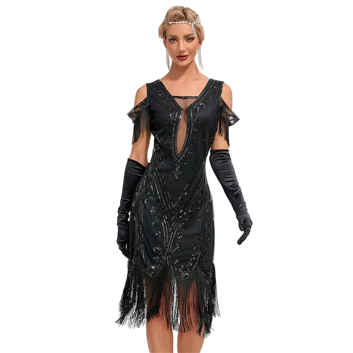 Inform when this item available Sequin Cutout Shoulders Flapper Dress