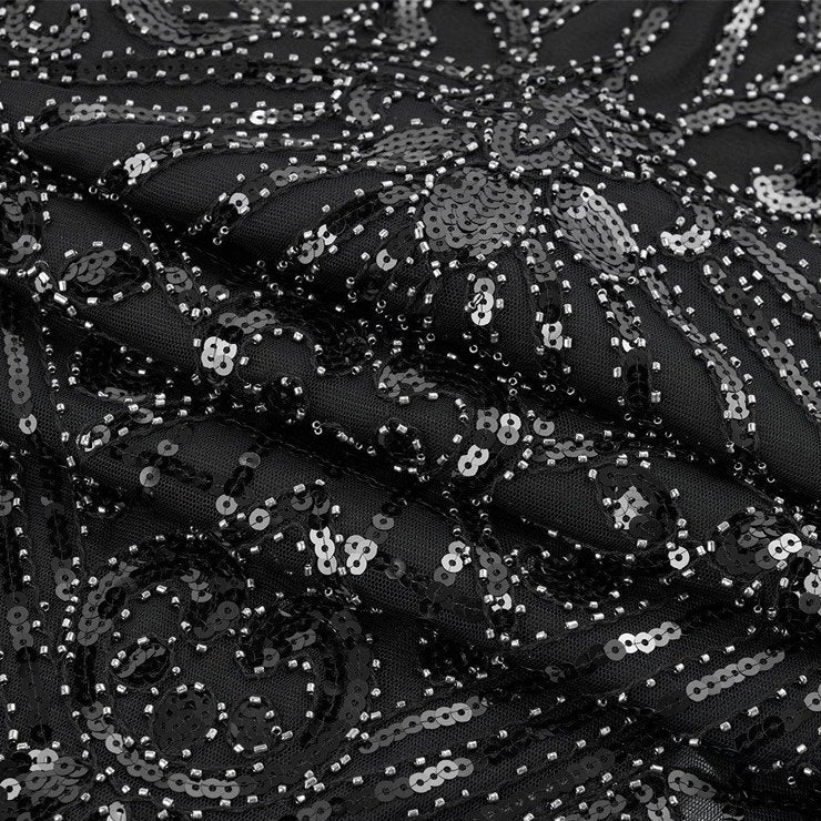 Art Deco Tassel Hem Cocktail Dress with Cap Sleeve - Black / S