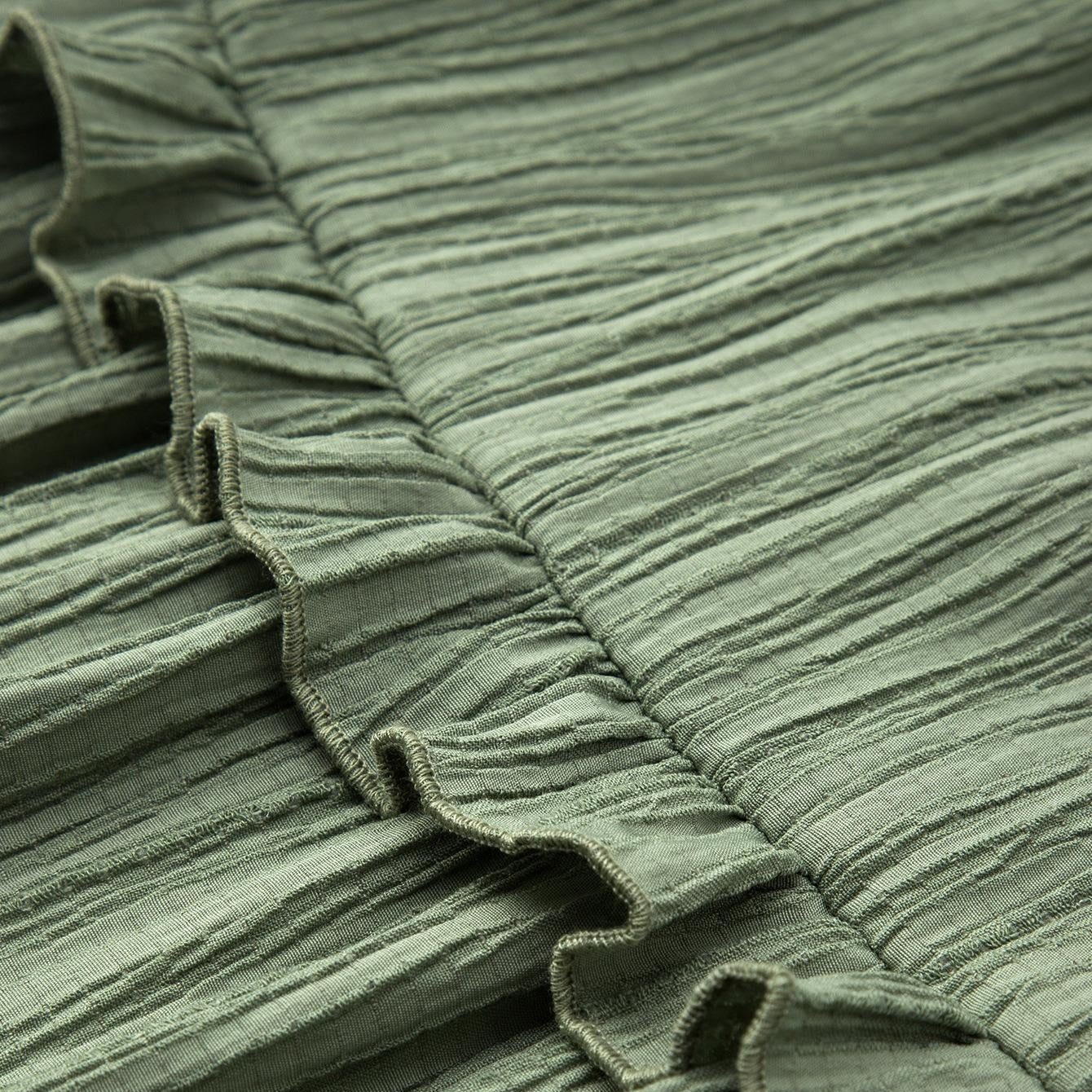 Retro Vintage Medieval Solid Maxi Skirt with Ruffle Trim - Green / S