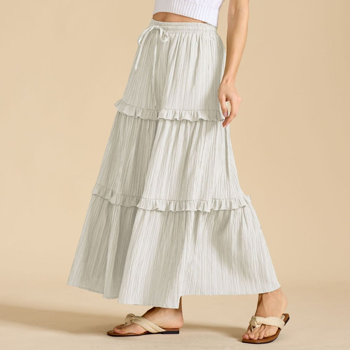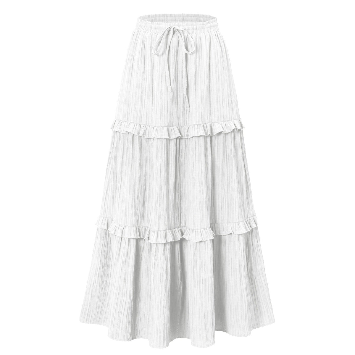 Retro Vintage Medieval Solid Maxi Skirt with Ruffle Trim