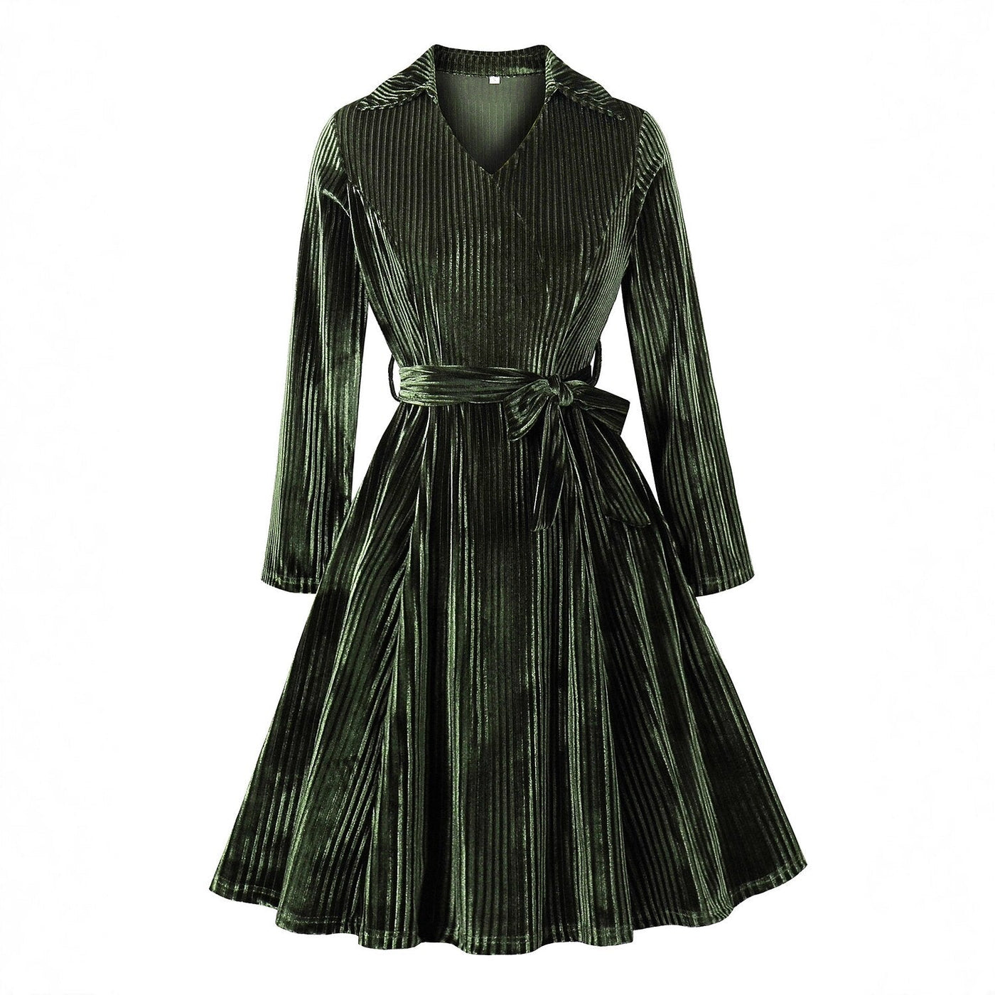 Inform when this item available V-Neck Ribbed Velvet A-Line Dress