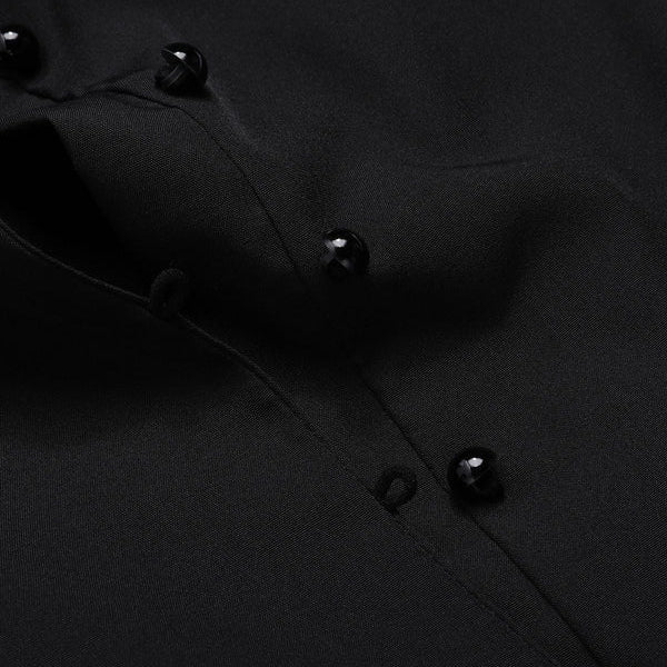 Victorian Pleated Shirt Lace Up Work Blouse - Black / S