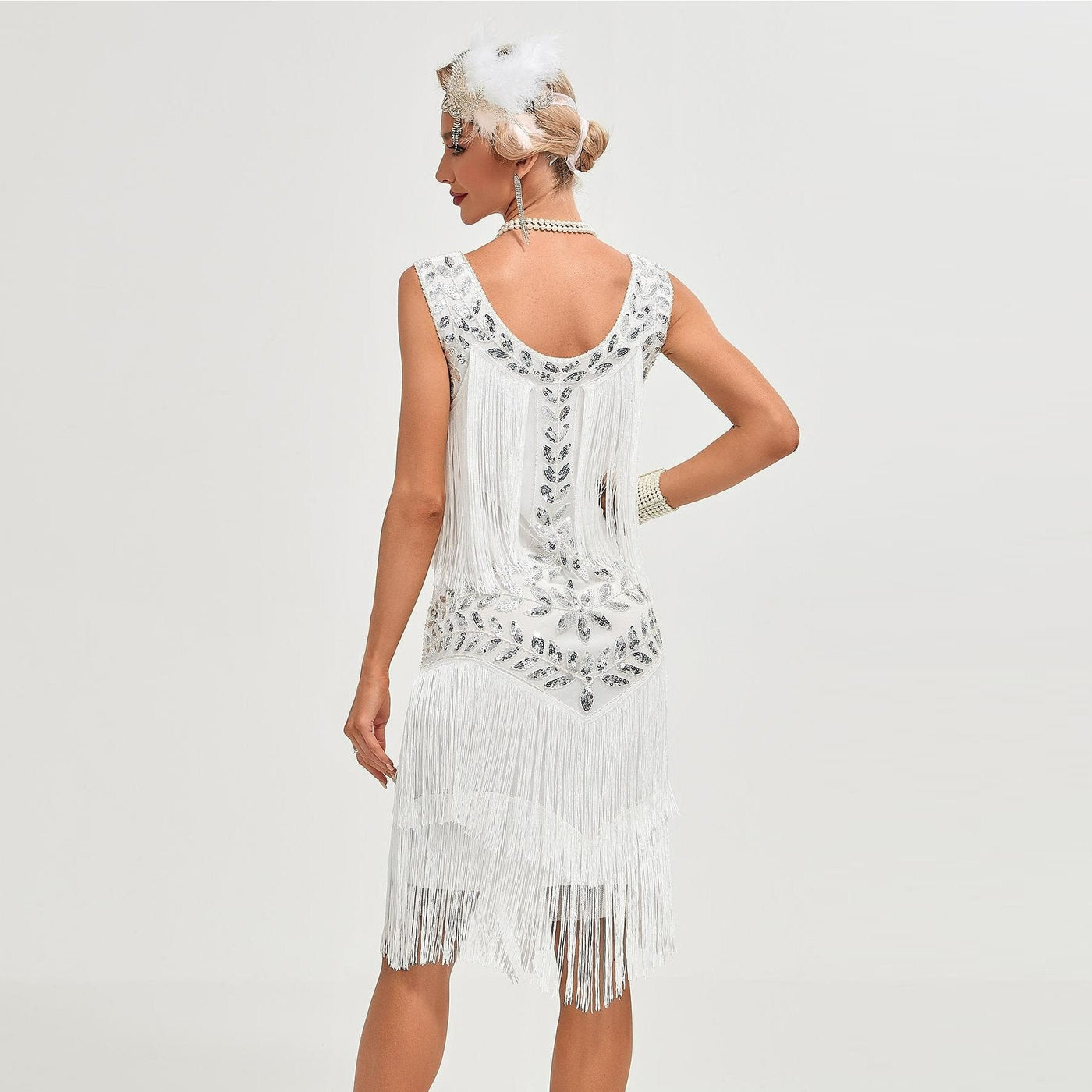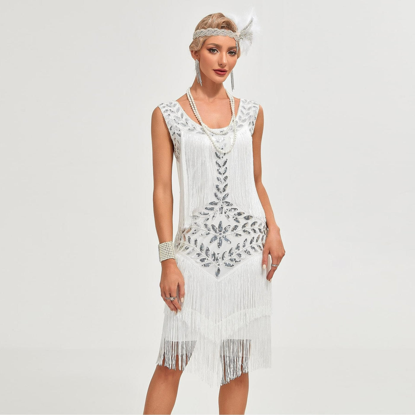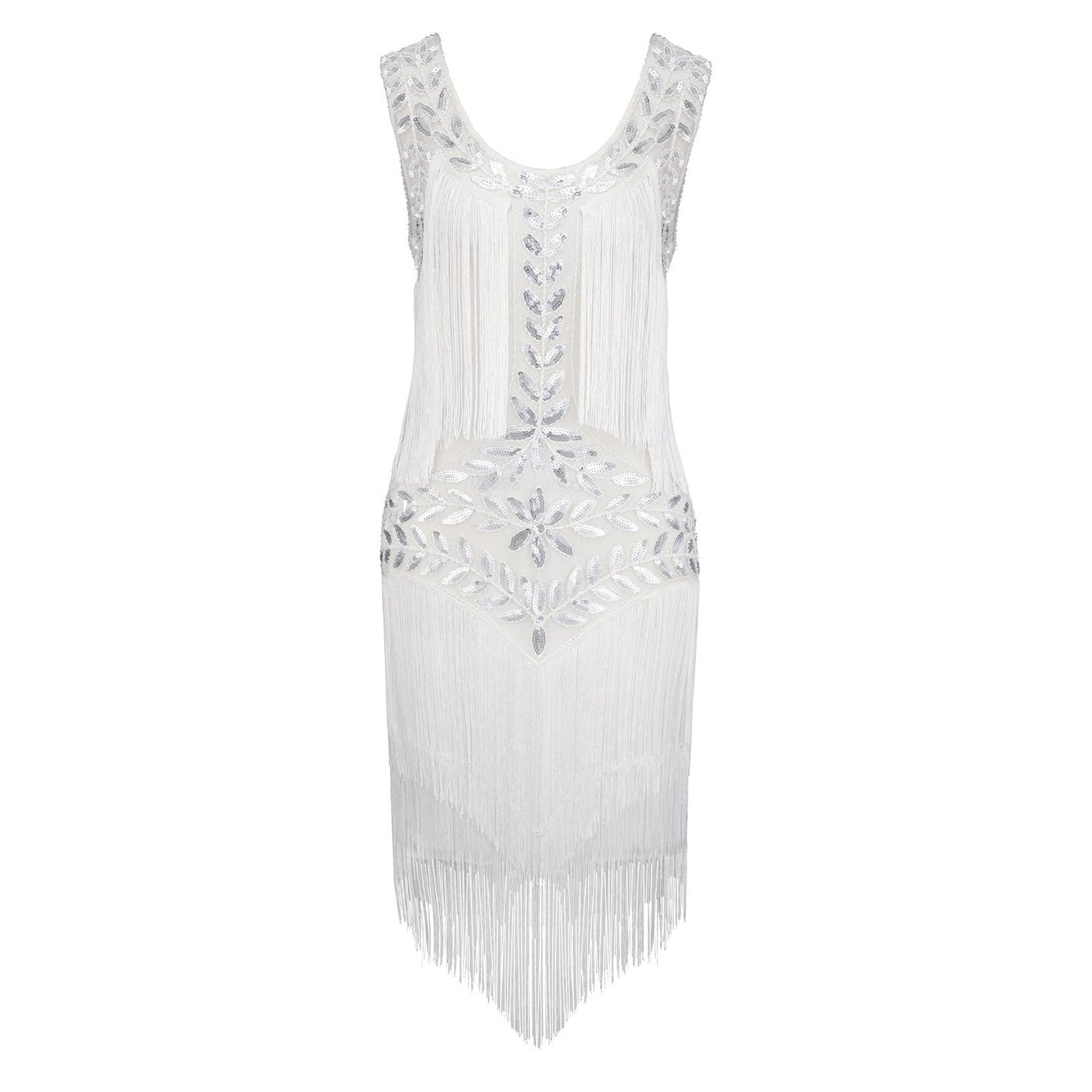 White Fringed Sequin Flapper Dress