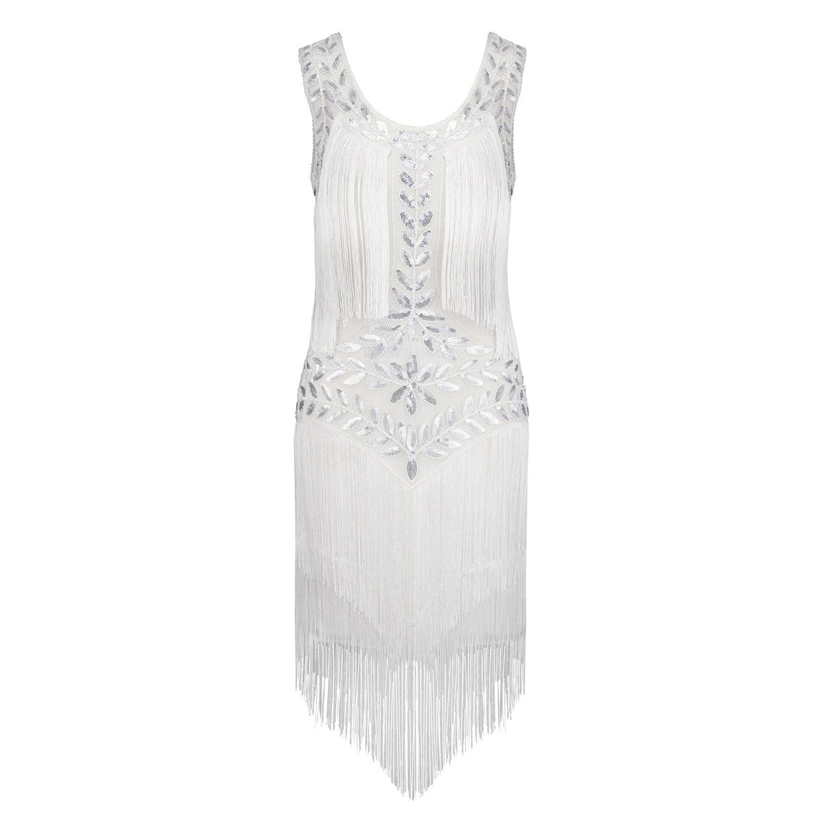 White Fringed Sequin Flapper Dress - White / S